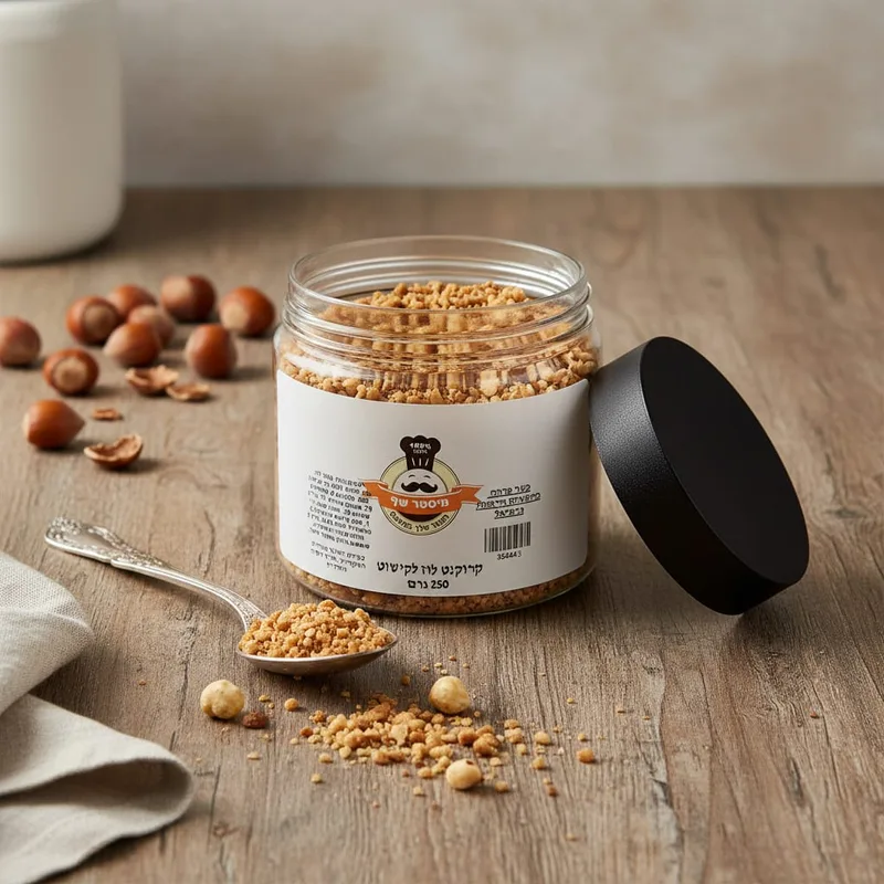 כשר פרווה בהשגחת הרבנות כרמיאל קרוקנט אגוזי לוז מסוכרים 250 גרם