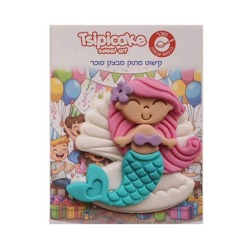 קישוט מבצק סוכר אכיל - בתולת ים שיער ורוד