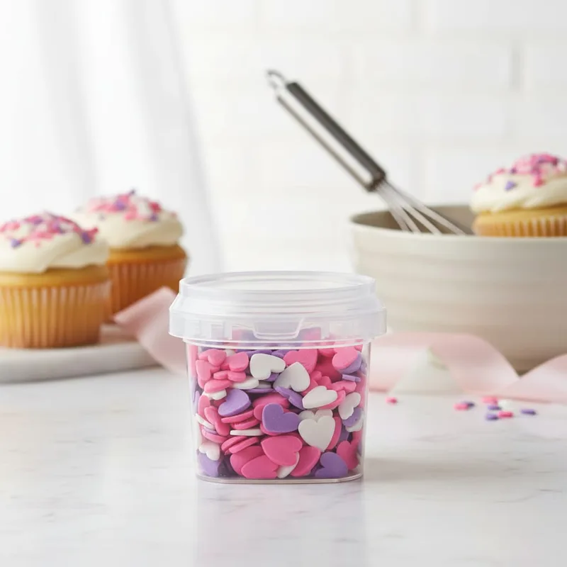 סוכריות לקישוט בצורות - לבבות לבן סגול ורוד - 70 גרם
