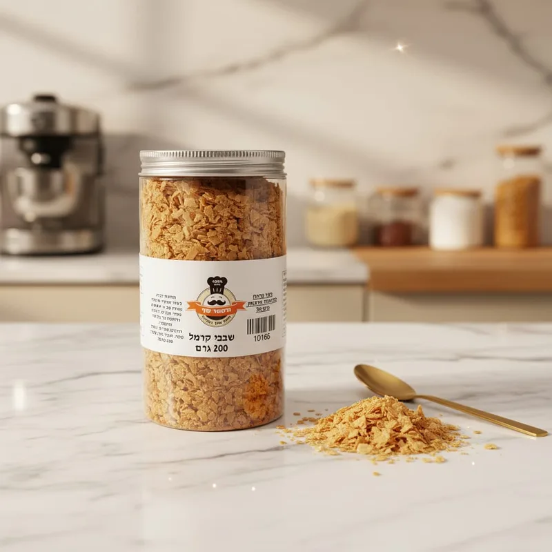 כשר פרווה בהשגחת הרבנות כרמיאל פייטה/שבבי קרמל 200 גרם - אלמנדוס
