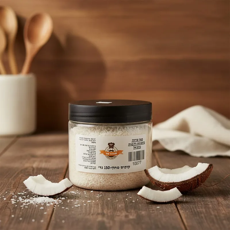 כשר פרווה בהשגחת הרבנות כרמיאל קוקוס טחון 150 גרם